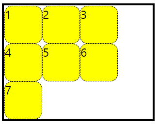 flex-start : items를 시작점(flex-start)으로 정렬 (기본값/왼쪽 정렬)