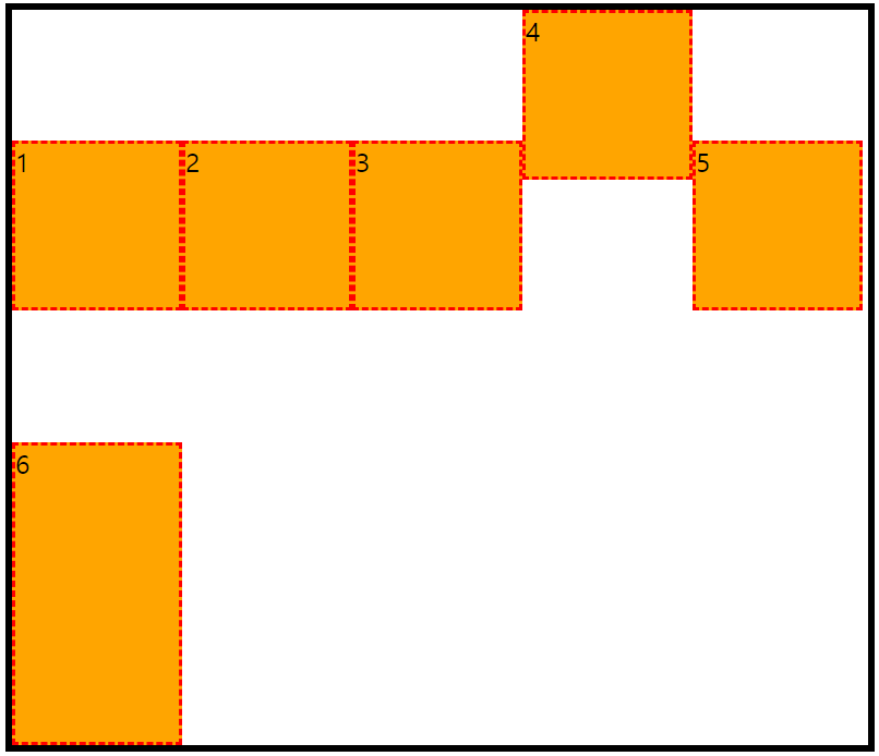 아래 코드를 보면 align-items를 이용하여 전체적으로 가운데 정렬을 한 후에 4번과 6번 item만 align-self로 정렬 방식을 바꾸어 보았습니다!