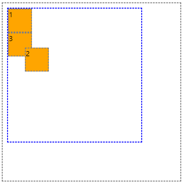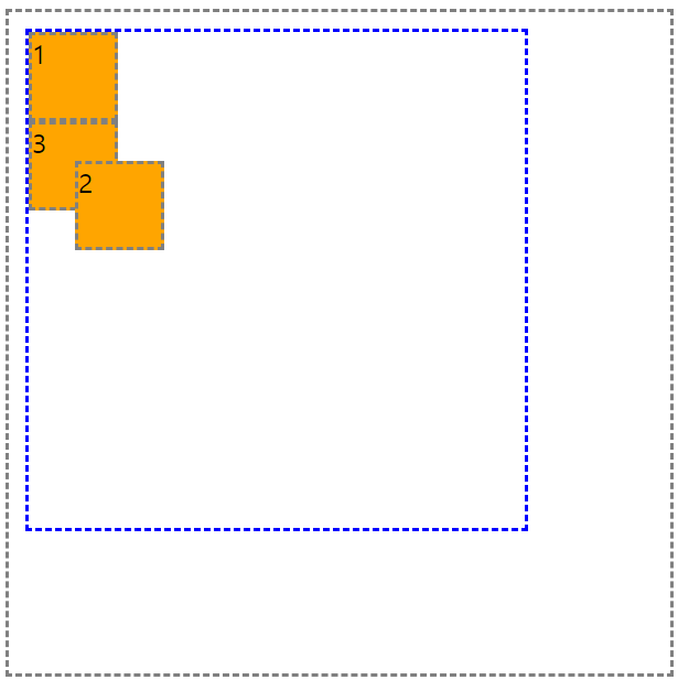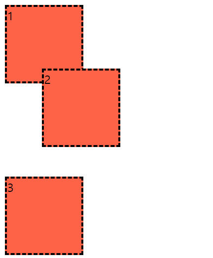 위와 같이 위치 상 부모요소를 기준으로 box2의 위치가 변경이 됩니다. 마지막 결과와 같이 미지정할 경우 상위 요소로 계속 올라가면서 확인을 하다가 결국 뷰포트(화면)를 기준으로 위치가 변경되게 됩니다.