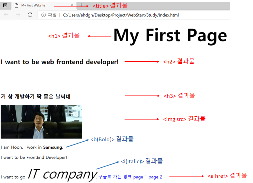 기본 태그를 이용하여 저의 웹 공부의 첫 발자국인 페이지를 만들어 보겠습니다!