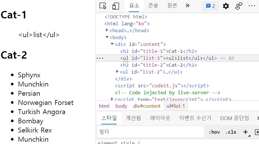 const myTag = document.querySelector('#list-1'); // myTag는 <ul id="list-1">가 된다