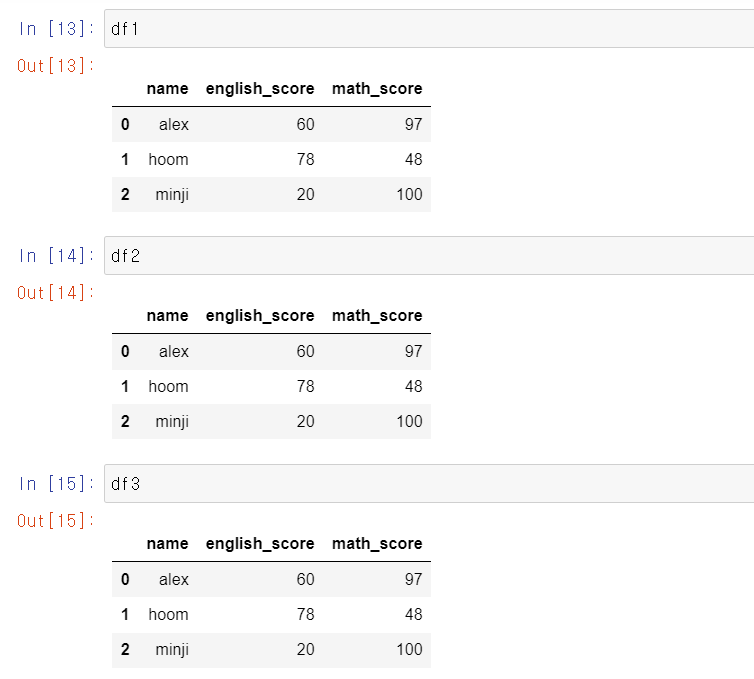 # 밑의 3가지 모두 같은 Data Frame입니다