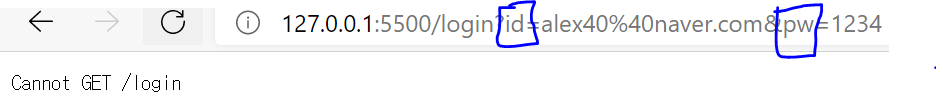 위 코드를 실행하게 되면 login 페이지로는 가게 되고 method가 GET속성이므로 URL에 email과 password가 나와야 하는데 실제로는 email과 password 정보가 url에 안 나옵니다.